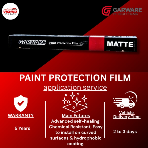 Garware Matte PPF gives your vehicle a satin matte look while safeguarding the paint with a 5-year official warranty. The film resists scratches, UV rays, stains, and minor abrasions while keeping the car looking premium.