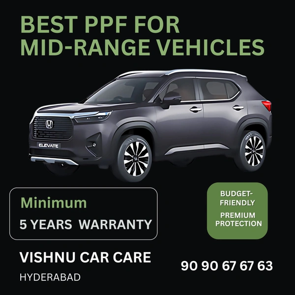 At Vishnu Car Care Hyderabad, we provide the best PPF installation for Honda Elevate. This one-time solution, backed by a 5-year warranty, protects the paint from everyday damage while retaining the car’s original look. It makes maintenance effortless—regular washes are enough to keep it looking brand new. Our PPF is trusted by Honda Elevate owners across Hyderabad as the perfect balance of quality and affordability.