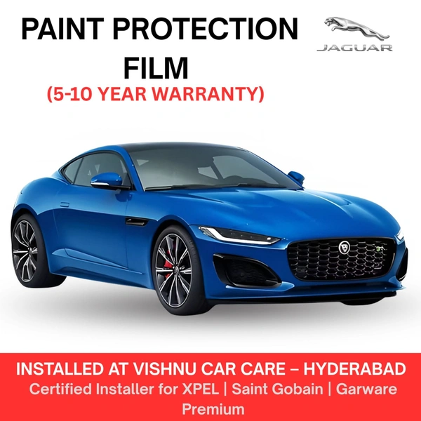 The Jaguar F-Type is a luxury sports car where every detail matters. At Vishnu Car Care – Hyderabad, we install premium PPF from XPEL, Saint Gobain & Garware, each officially registered and backed with a direct warranty mail.