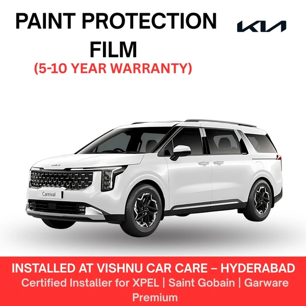 The Kia Carnival is a luxury MPV designed for comfort, and PPF ensures its premium finish stays intact. At Vishnu Car Care – Hyderabad, we install XPEL, Saint Gobain & Garware Premium PPF, each registered with the brand and followed by a direct warranty mail.