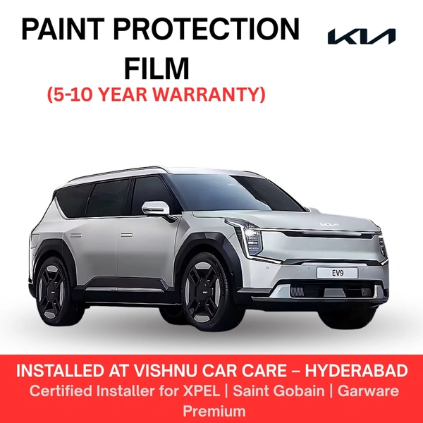 The Kia EV9 is a futuristic premium SUV, and it deserves advanced paint protection. At Vishnu Car Care – Hyderabad, we install genuine PPF from XPEL, Saint Gobain & Garware Premium, each job officially registered with a direct warranty mail.