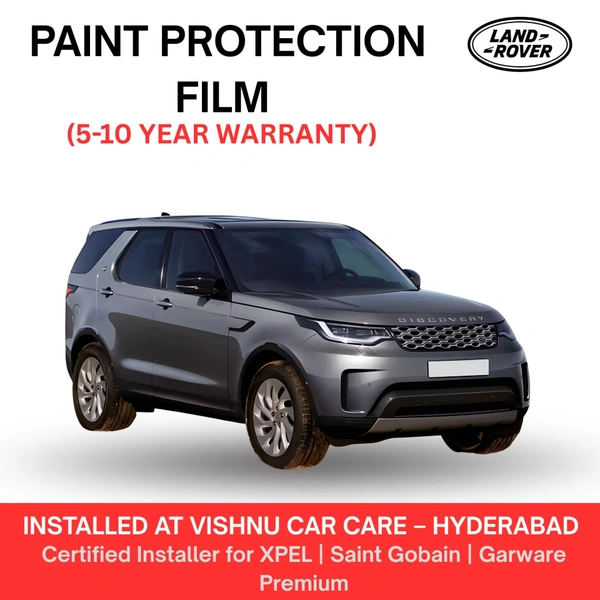 The Land Rover Discovery is a premium SUV built for versatility. At Vishnu Car Care – Hyderabad, we install genuine XPEL, Saint Gobain & Garware Premium PPF, backed by direct manufacturer warranty mail.