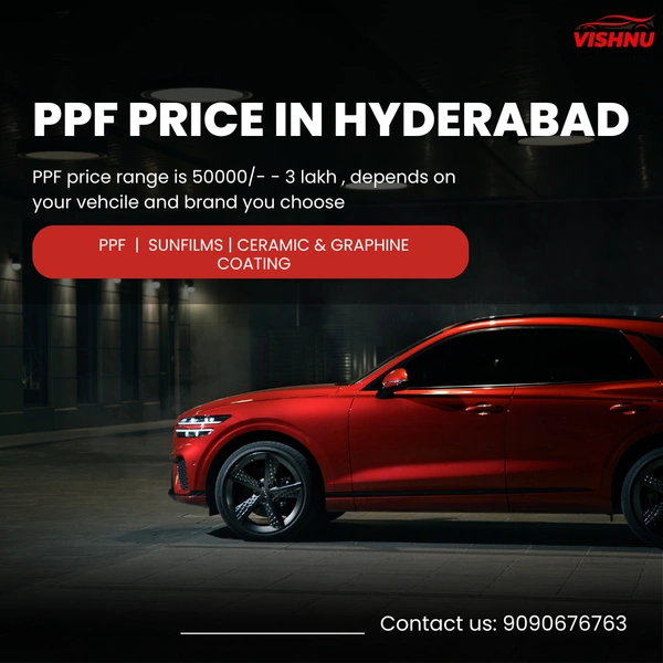 Looking for the PPF price in Hyderabad for your car? Vishnu Car Care offers clear and transparent pricing using trusted, high-quality Paint Protection Films. Pricing is based on your car size, brand selection and coverage type, so you get long-lasting protection and excellent value.