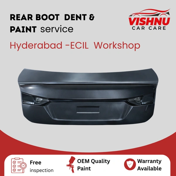 Restore your car’s rear boot to a clean, uniform, factory-like finish with expert repainting services at Vishnu Car Care – ECIL, Hyderabad. Rear boot repainting is ideal for scratch marks, dent damage, paint peeling, and accident-related repairs caused during loading, parking, or rear impact.