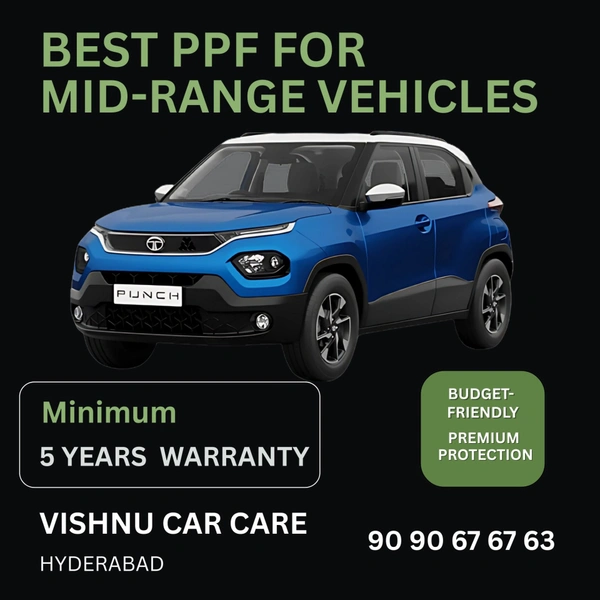At Vishnu Car Care Hyderabad, we provide the best PPF installation for Tata Punch. This one-time solution, backed by a 5-year warranty, protects the paint from everyday damage while retaining the car’s original look. It makes maintenance effortless—regular washes are enough to keep it looking brand new. Our PPF is trusted by Tata Punch owners across Hyderabad as the perfect balance of quality and affordability.